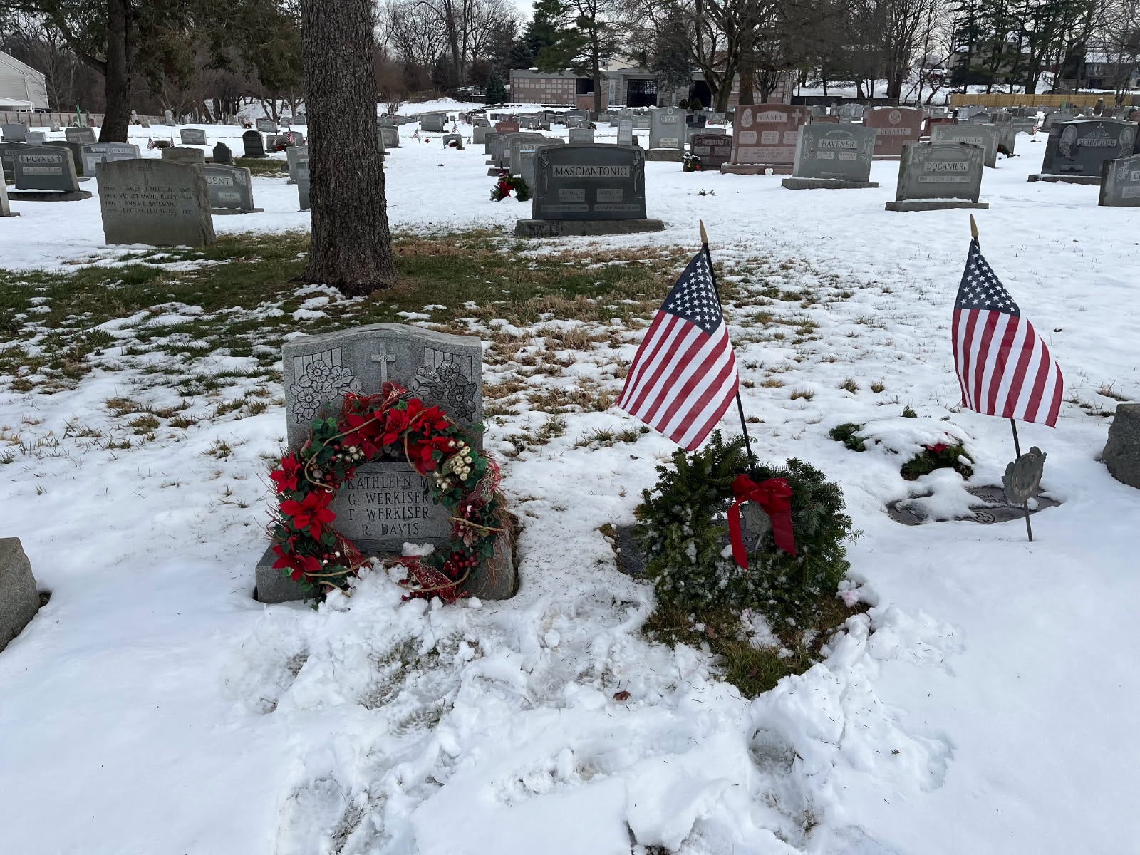 Yesterday, my sister Eileen made the visit. As she was leaving the cemetery, her phone, unbidden began to play the Christmas song “Silver Bells.” Of course, she called me immediately so we could savor the moment together, and she sent me a photograph of the gravestone.
